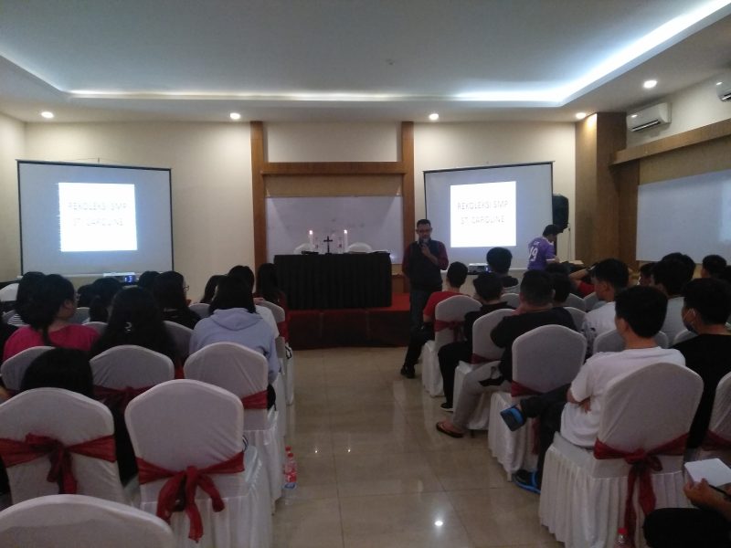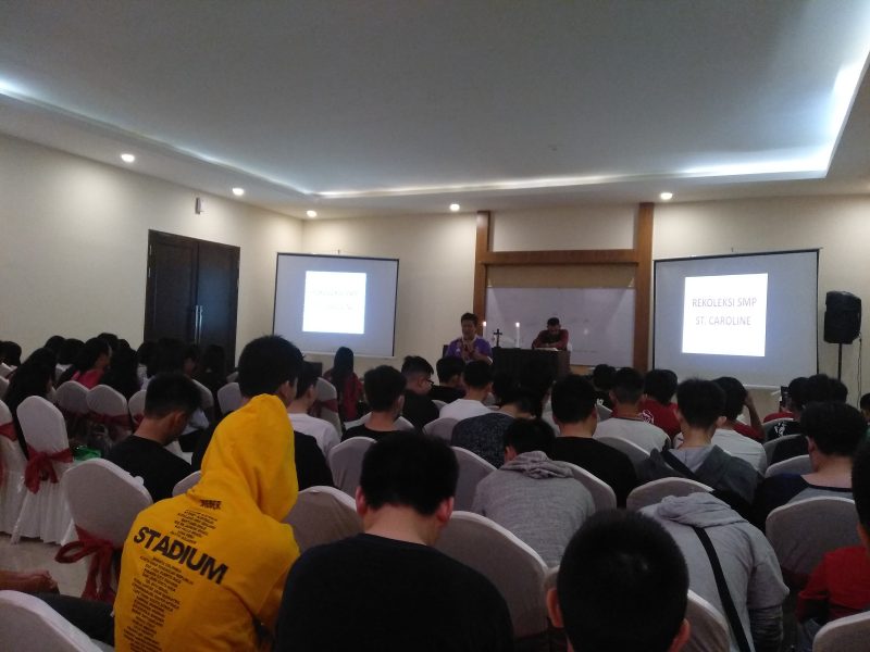 Liputan, SMP Kegiatan Rekoleksi SMP St. Caroline Posted on 28/11/2019 by Tiyo Hari pertama karyawisata SMP St. Caroline diawali dengan kegiatan rekoleksi. Kegiatan tersebut dilaksanakan di kawasan Batu Raden Purwokerto Jawa Tengah. Tiyo Lomba Bulan Bahasa SMP St. Caroline Mengasihi Allah, Sesama, dan Alam Ciptaan melalui kegiatan Rekoleksi