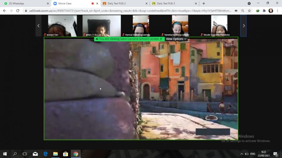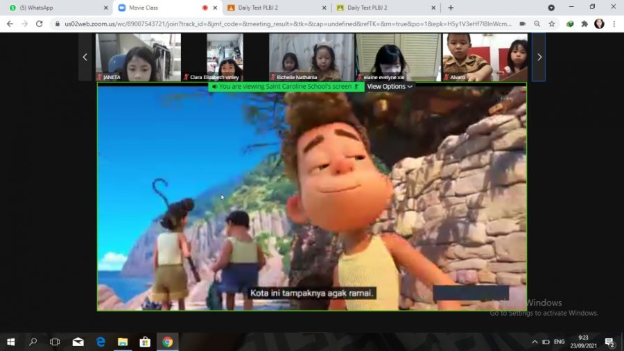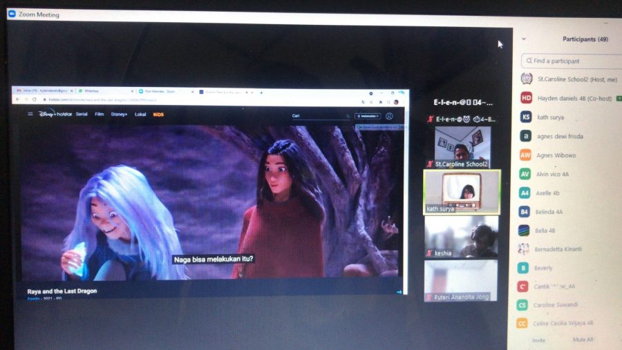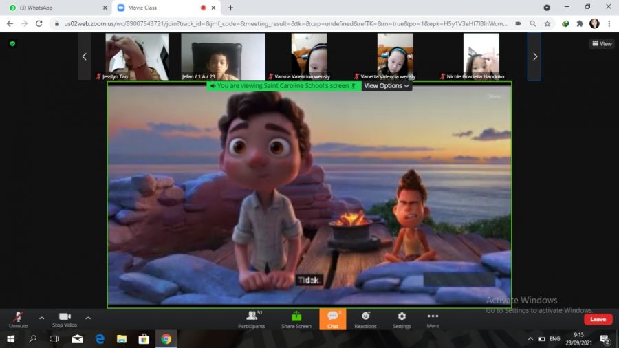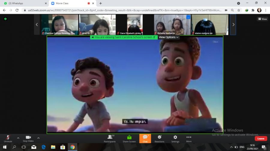 Sekolah SDS St Caroline School melaksanakan kegiatan menonton film Disney virtual bersama dengan Bapak/Ibu guru dan juga Peserta Didik Kelas I-VI