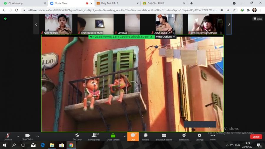 Jika biasanya pihak sekolah selalu mengadakan acara menonton di bioskop akan tetapi di tengah pandemi ini, kegiatan menonton dilaksanakan dengan menggunakan aplikasi zoom meeting.