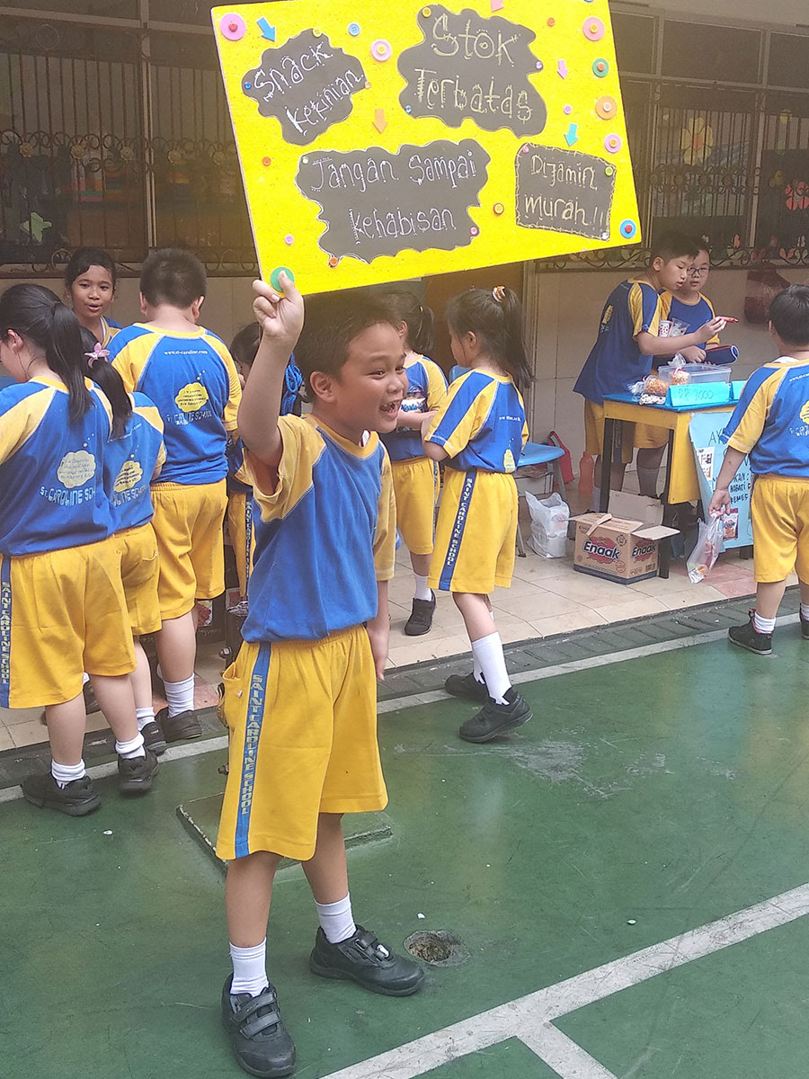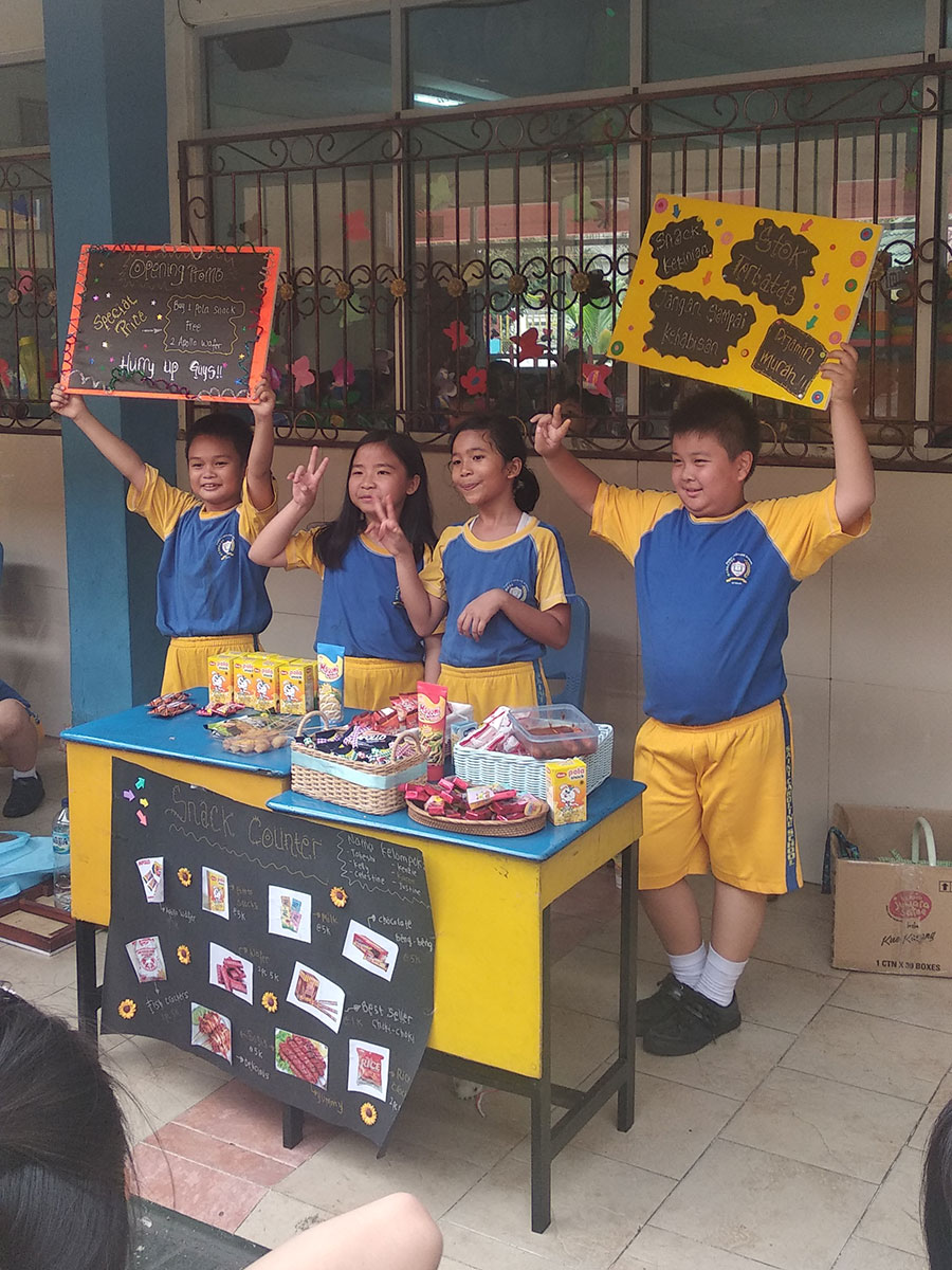 Setelah bermain, peserta didik kelas melakukan transaksi jual beli, dimana kelas IV dan V harus menjajakan dagangan dan berjualan kepada adik kelasI, II, dan III. Lewat kegiatan ini, kemampuan matematika, literasi finansial dan kemampuan berwirausaha (entrepreneurship skill) siswa di asah.